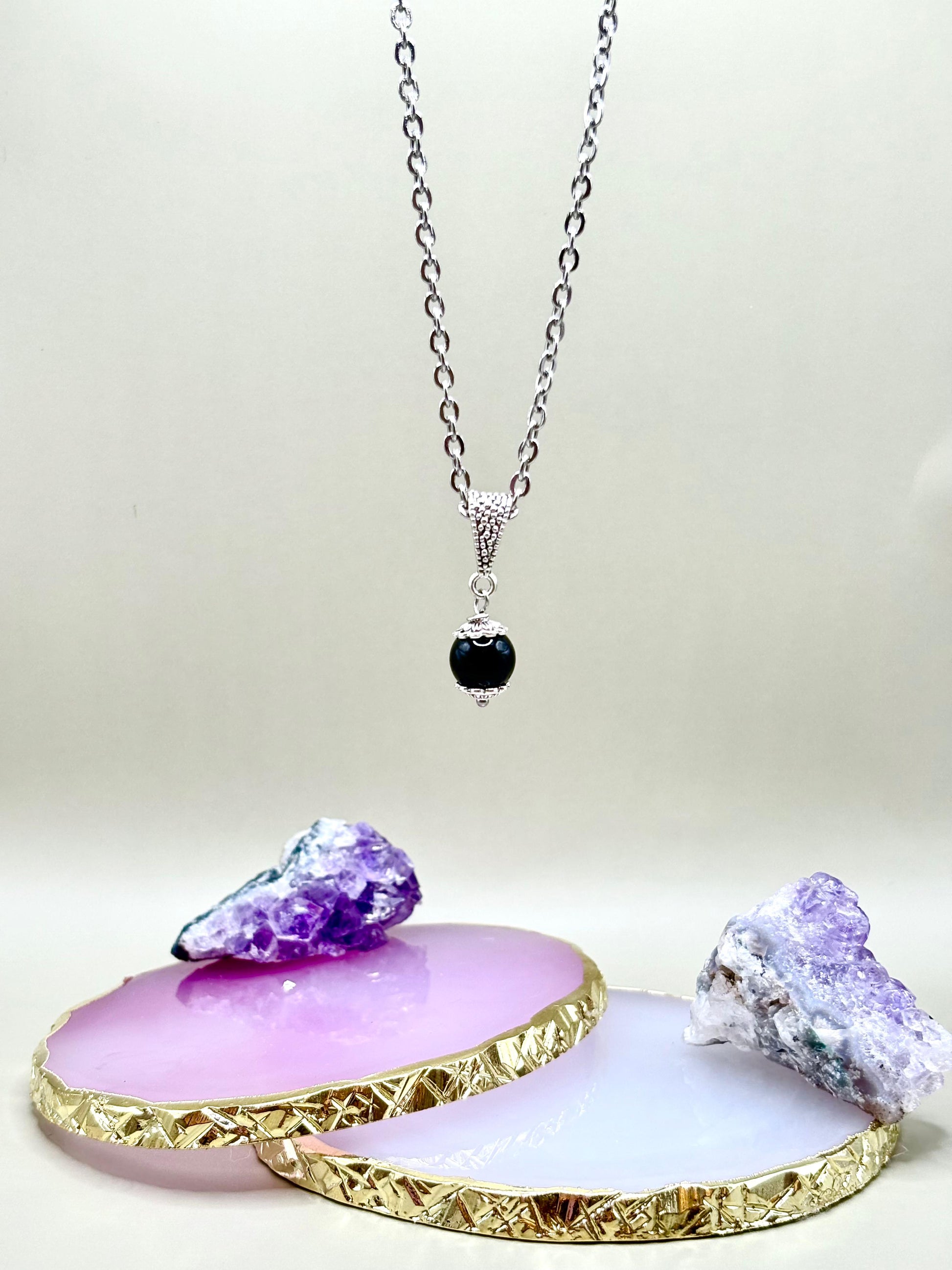 Il ciondolo è composto da una sfera in onice nera, pietra vulcanica nota per la sua intensa energia di radicamento e difesa psichica. Secondo l’antica credenza isolana, la forma sferica simboleggia l’occhio che respinge il male, agendo come scudo contro invidia, negatività e malocchio.